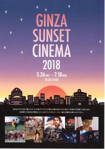 GINZA PLACE【GINZA SUNSET CINEMA 2018】 銀座プレイス 銀座サンセットシネマ2018 GINZA PLACEで働くスタッフが選ぶ、テラスで夕暮れの風を感じながら見たい作品を不定期で上映。 仕事帰りや休日の夕暮れにカフェのドリンクやスイーツ…