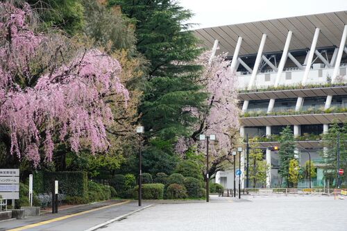 東京桜めぐり明治神宮外苑 霞ヶ丘町 『聖徳記念絵画館~国立競技場』 「にこにこパーク」 聖徳記念絵画館前通り 聖徳記念絵画館 「ユニコーン像」と「枝垂れ桜」、左手には「軟式球場」が広がります。 「ユニコーン像」 「枝垂れ桜」と東京2020オリンピック…