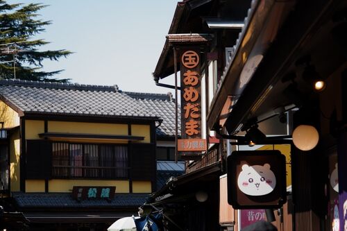 冬の川越旅⑨『ちいかわもぐもぐ本舗川越店と菓子屋横丁編』 Winter trip to Kawagoe 9 : "Chiikawa Mogumogu Honpo Kawagoe store & Kashiya-Yokotyo edition" 肩に落ちてきたカニツメに気づかず凛々しい顔で歩くちいかわ好きだな~ 鎧さんの案内するフォト…