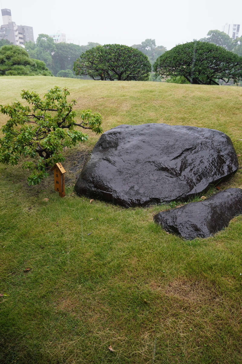 まず園内の見どころとしては、数々の「名石」があるとのことでした。そして、意外と雨の日の庭園も風情があって見応えがあるとのことでした。(私の目論見と見事に合致!)