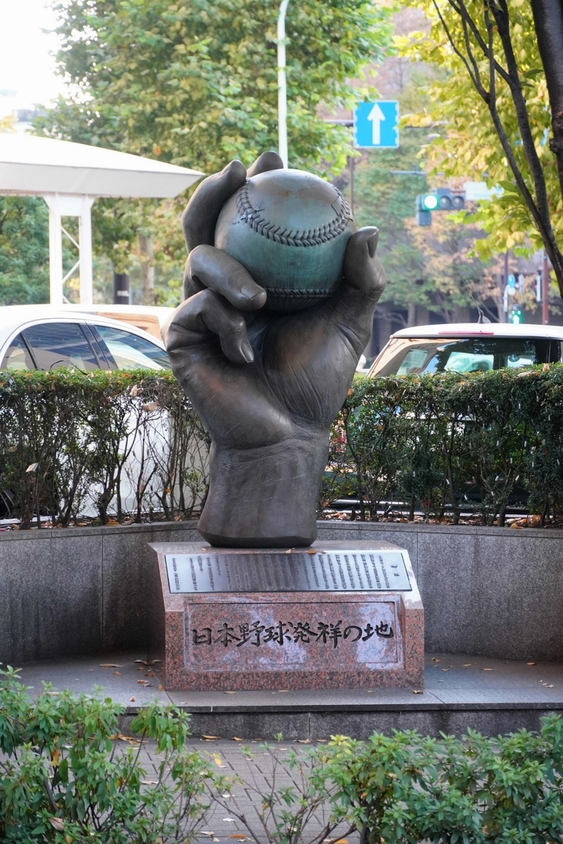学士会館の一角にある日本野球発祥の地の碑