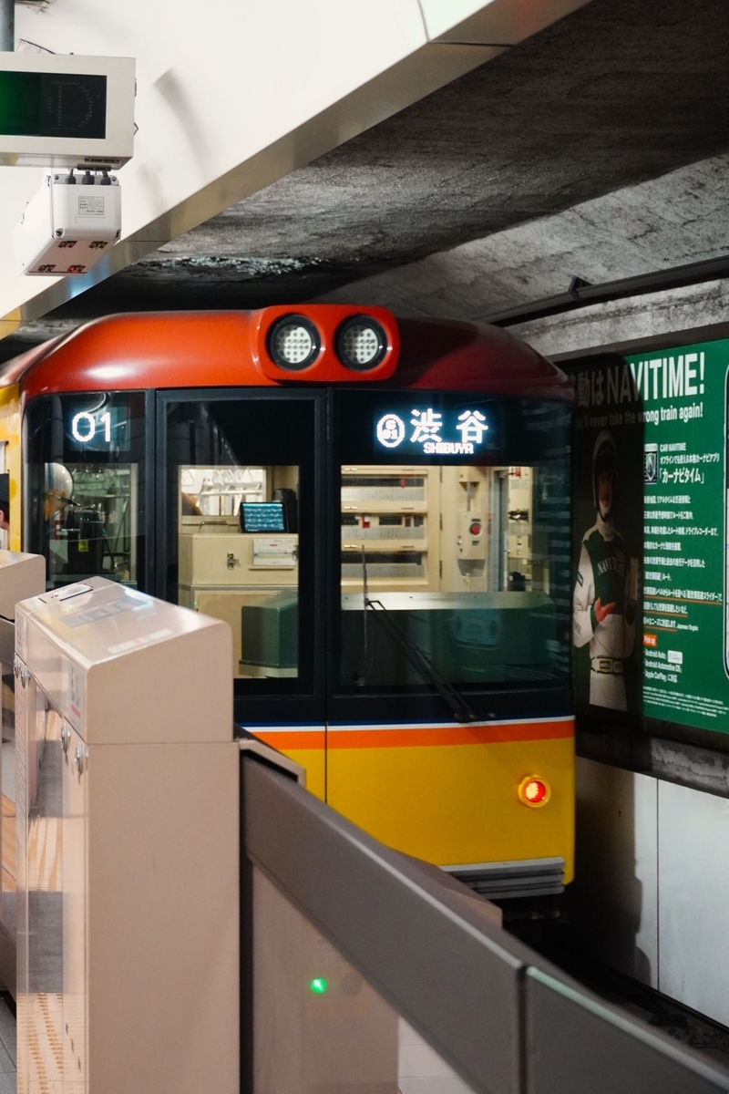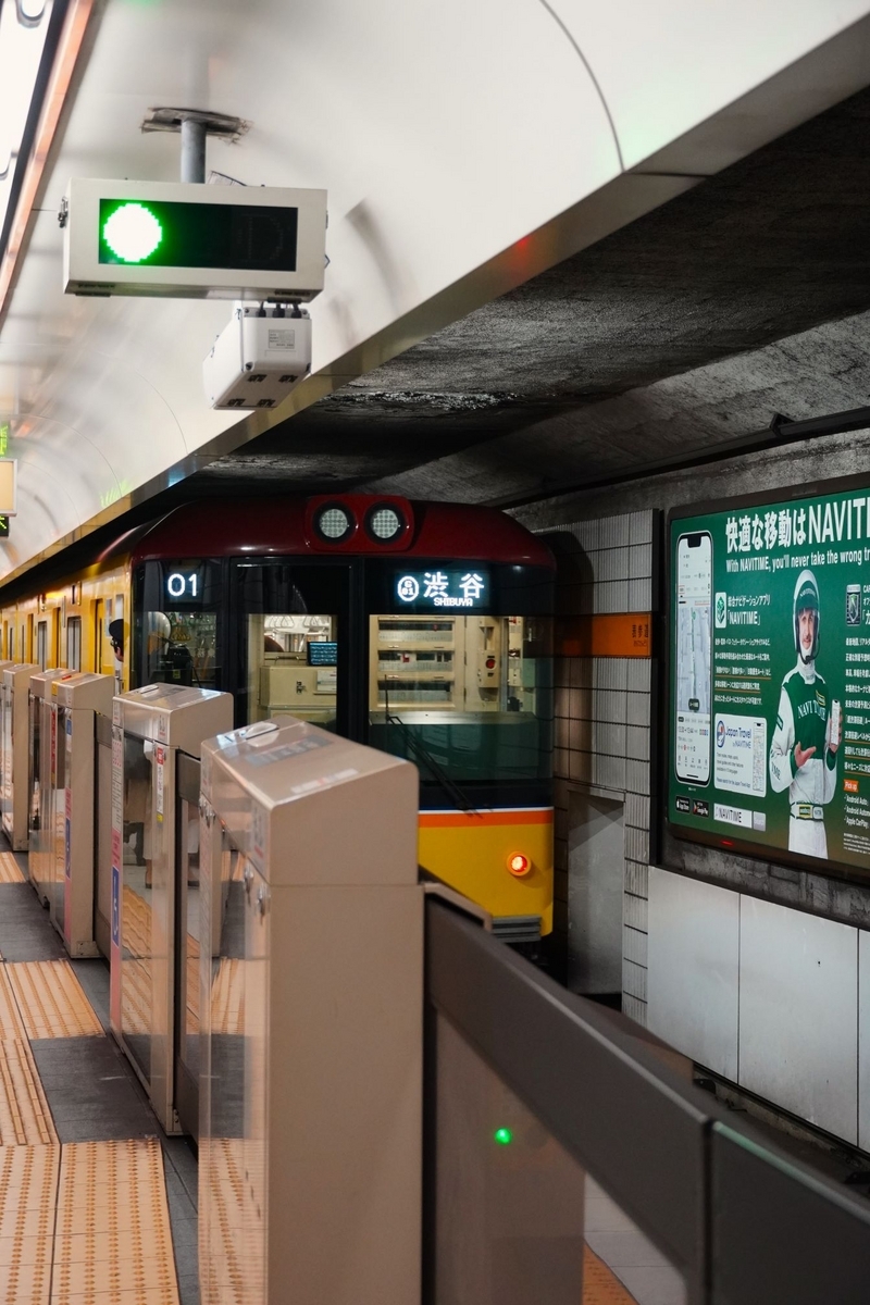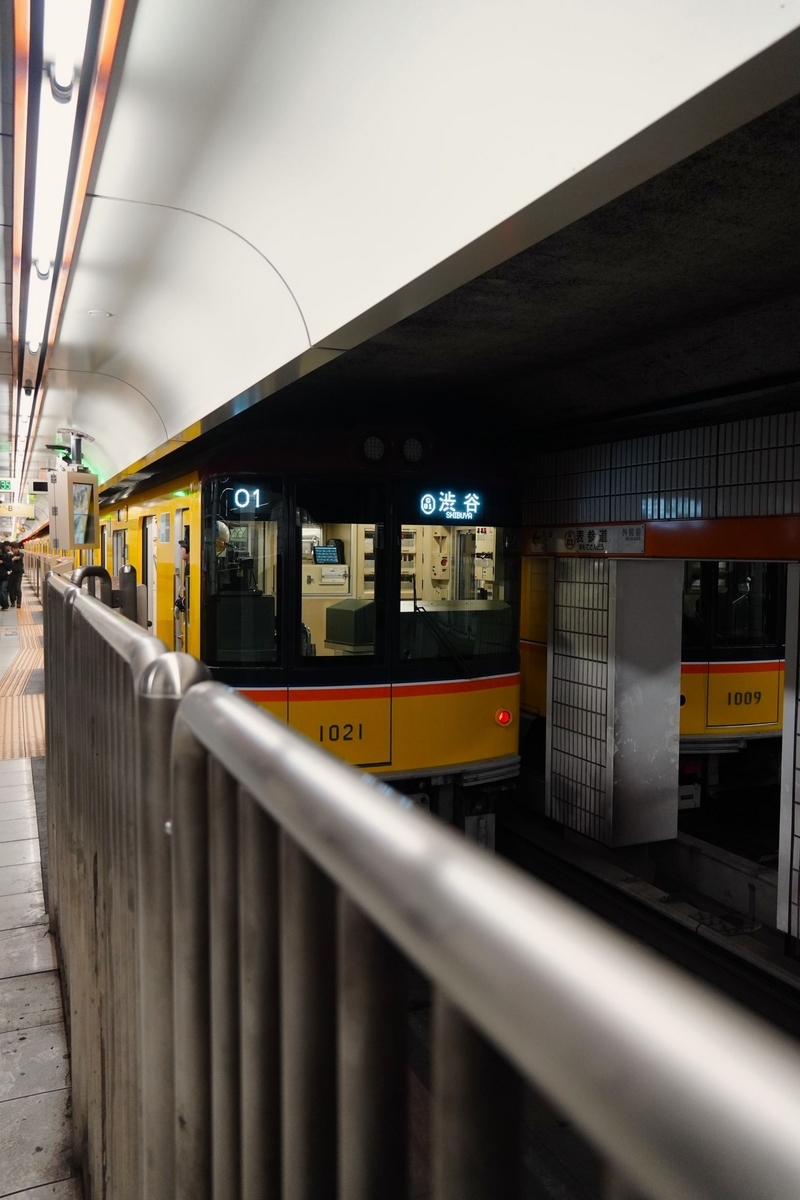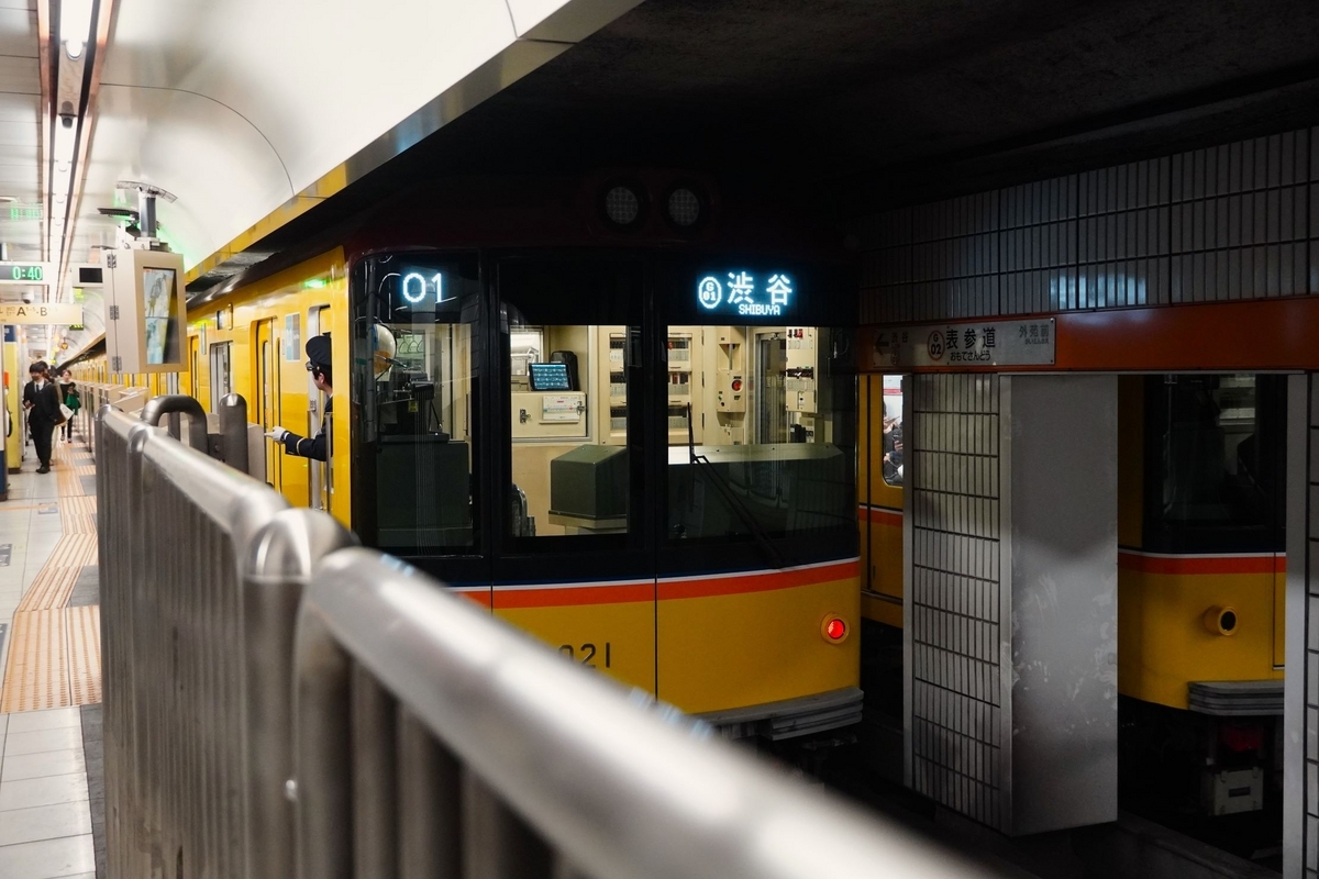 半蔵門線のホームに隣接する銀座線の1000系車両