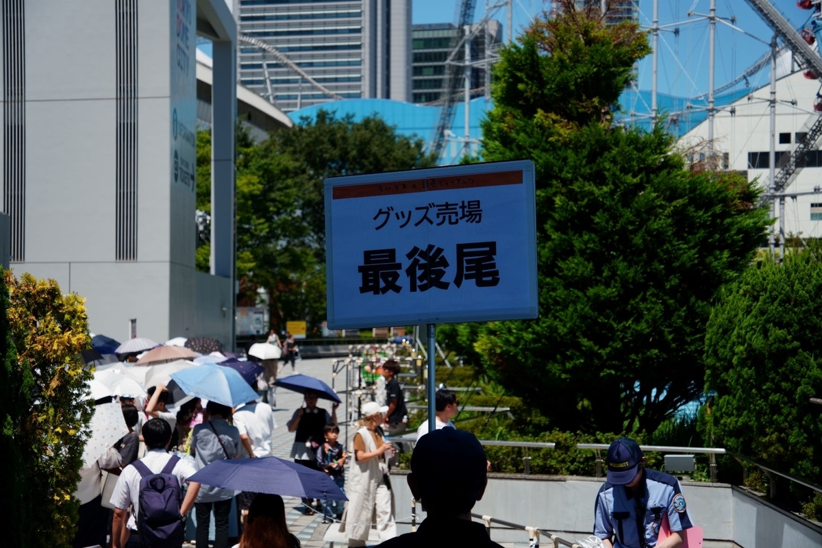 東京ドームホテル方向に伸びるグッズ販売会場待機列