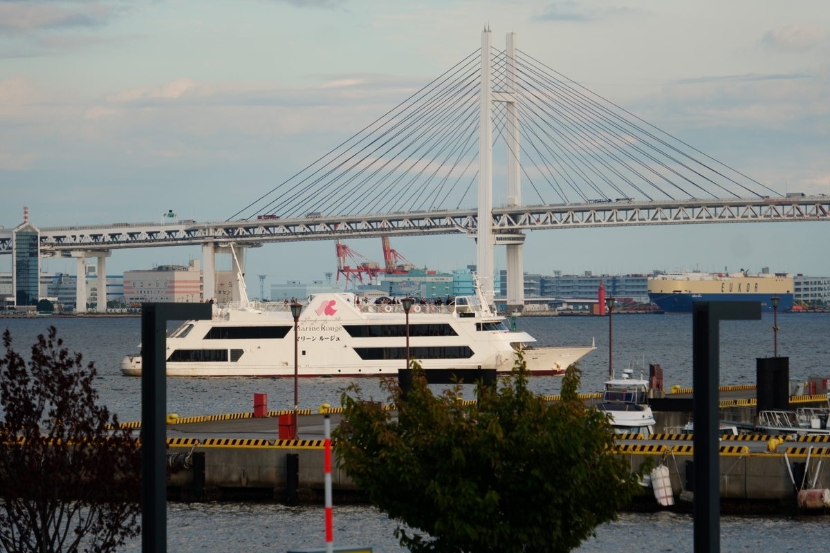 クルーズ船「マリーン ルージュ」と横浜ベイブリッジ
