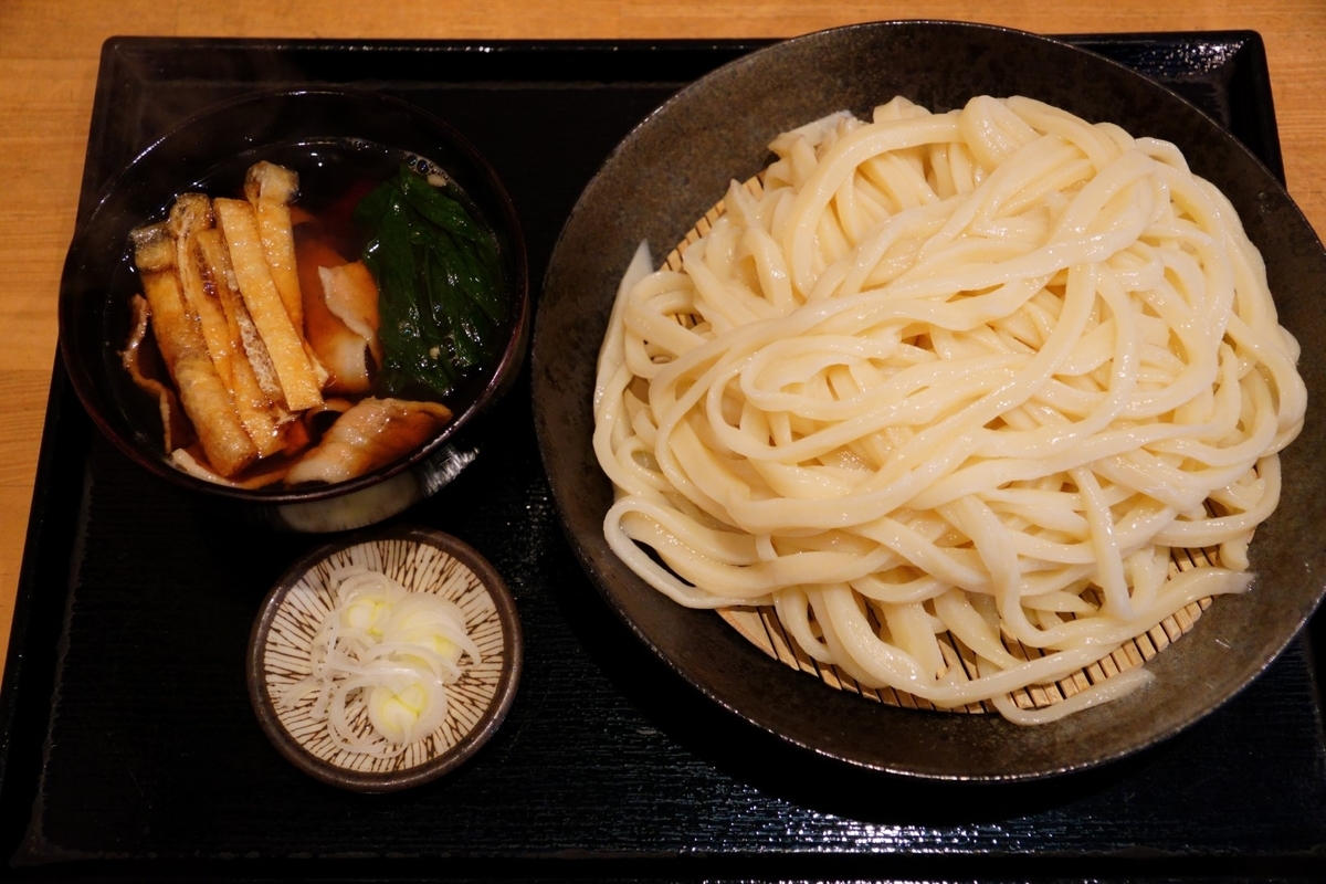 つけ汁の具はお揚げと豚肉、ほうれん草とシンプルです。とてもおいしくいただきました。