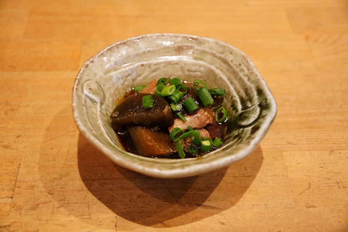 おうどんが来るまで、サイドメニューの「なすと鶏のうま煮」、写真がないですが、「ほうれん草とクルミのごまあえ」をいただきました。