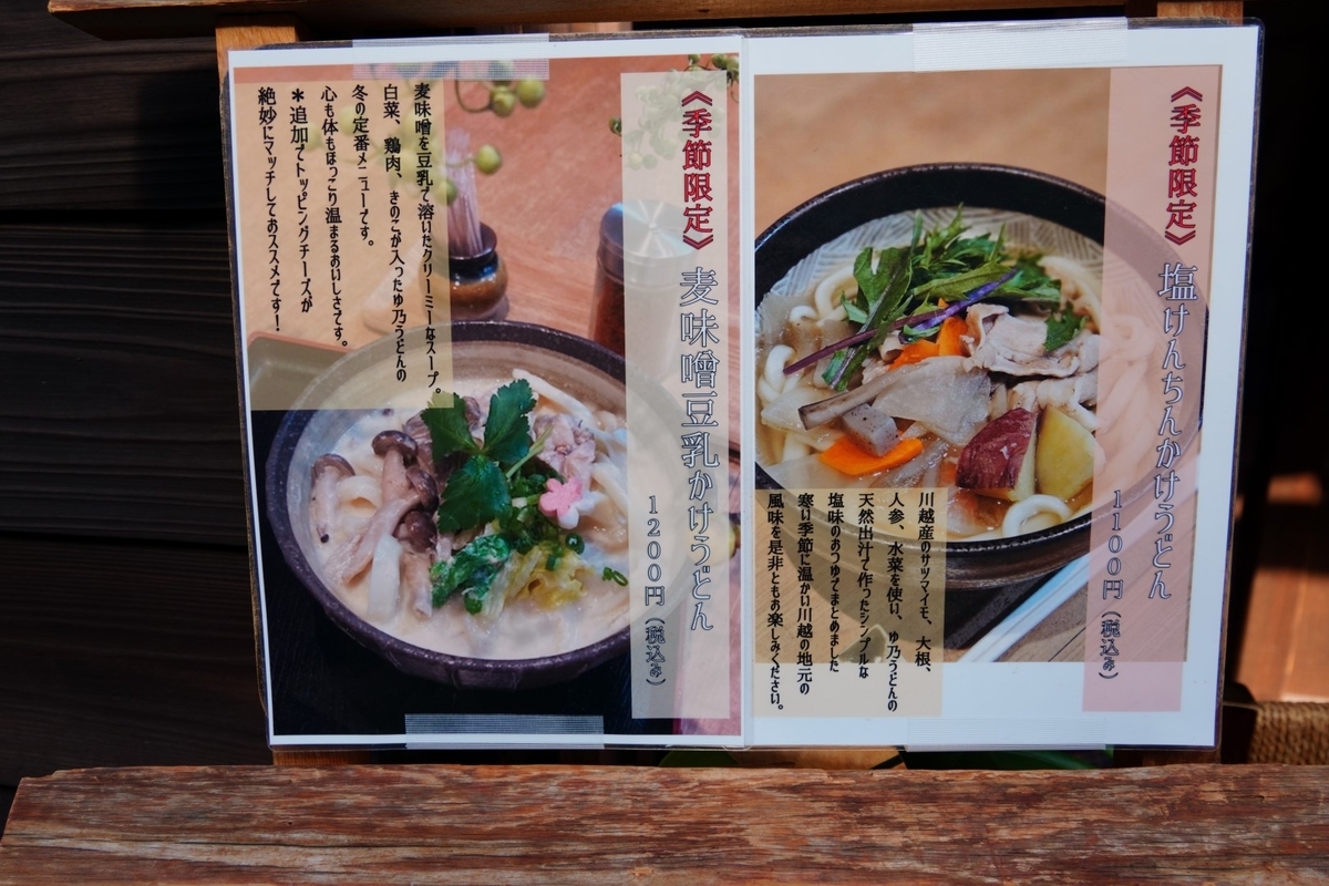 季節限定メニューの”塩けんちんかけうどん”と”麦味噌豆乳かけうどん”