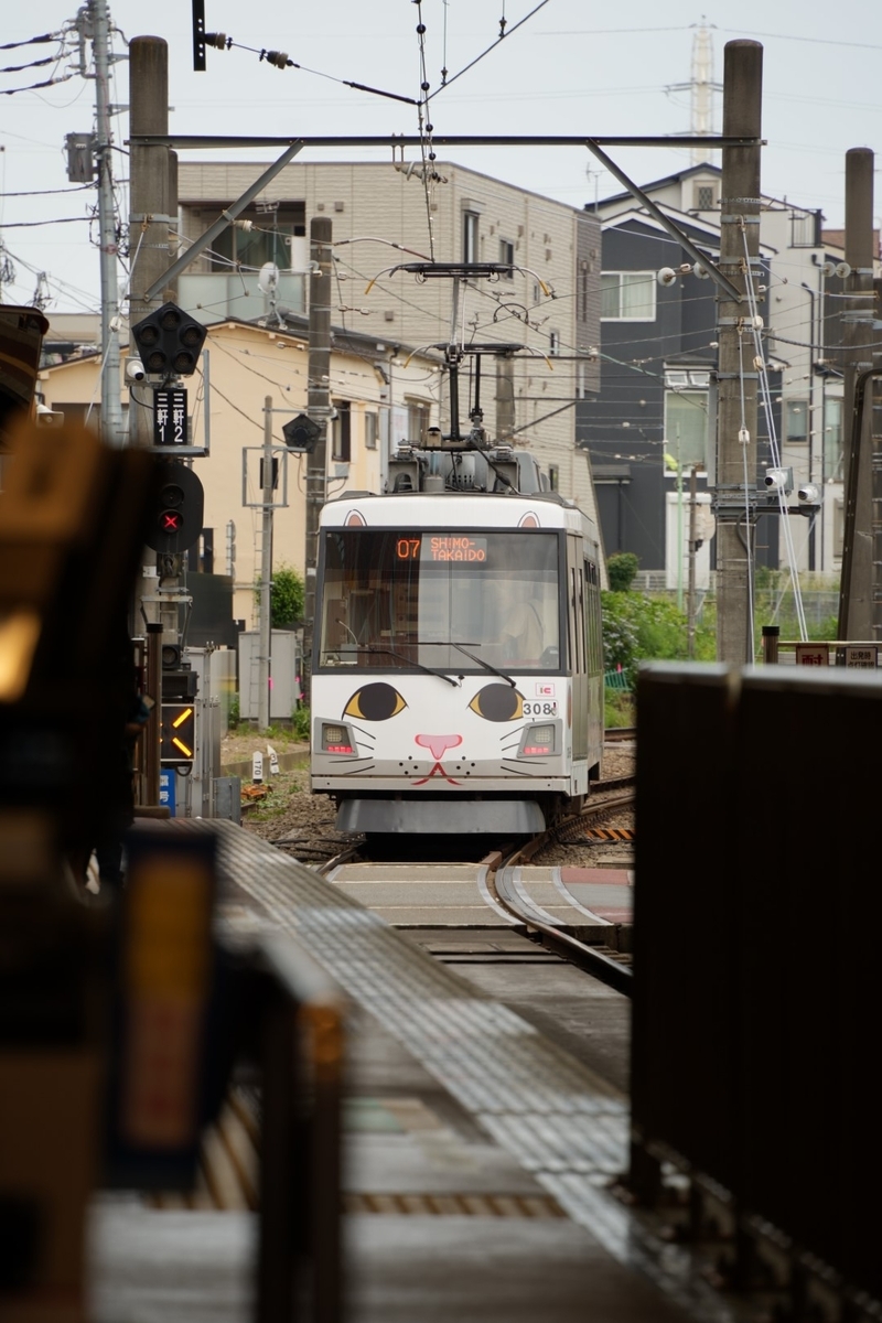 Early summer scenery of the Tokyu Setagaya Line ② 'The Lucky Manekineko Tram at Sangenjaya Stattion'