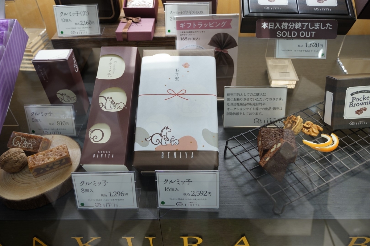 大丸東京店 スイーツや東京みやげを求めて、多くの行列が発生します。50分ほどの待ち時間ということで、クルミッ子を求めて鎌倉紅谷に並びます。8個入り×2、あじさい8枚入り、ハウス型BOX(2025クリスマス)×2を購入。