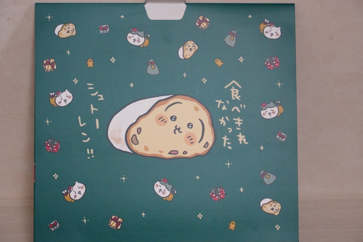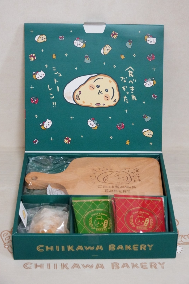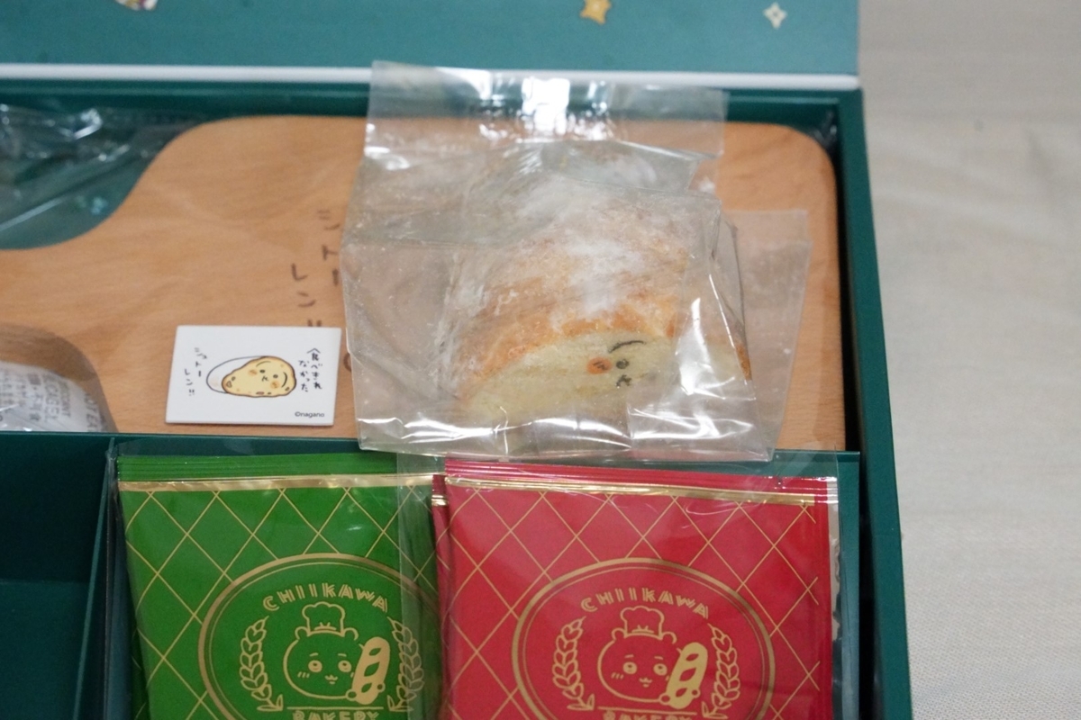 「ちいかわベーカリー」のこだわりが詰まったギフトボックス。作中(2024年のクリスマス特別回)にも登場した、シュトーレンと化したうさぎを忠実に再現!(思ったより小さい( ´艸`))